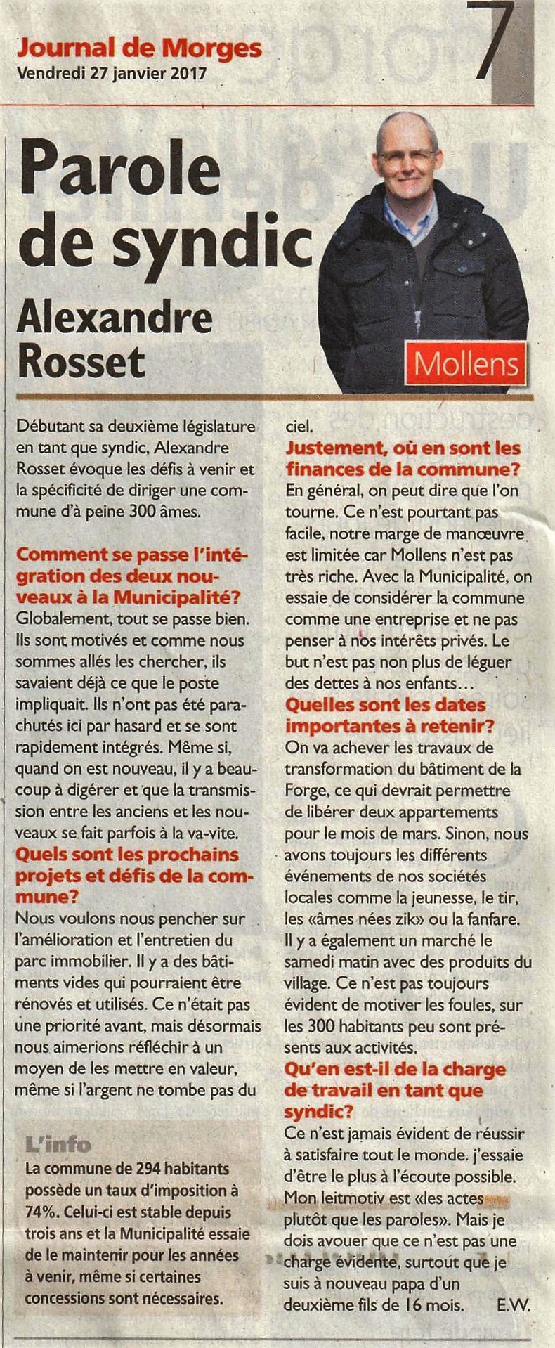 Article paru dans le Journal de Morges du 27 janvier 2017